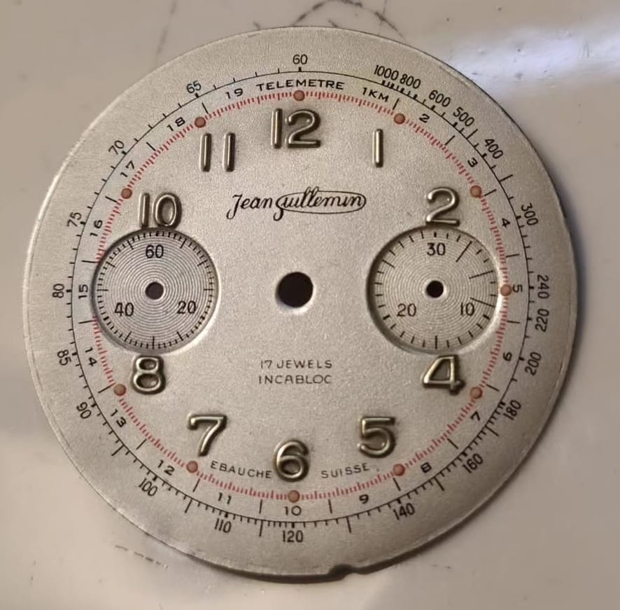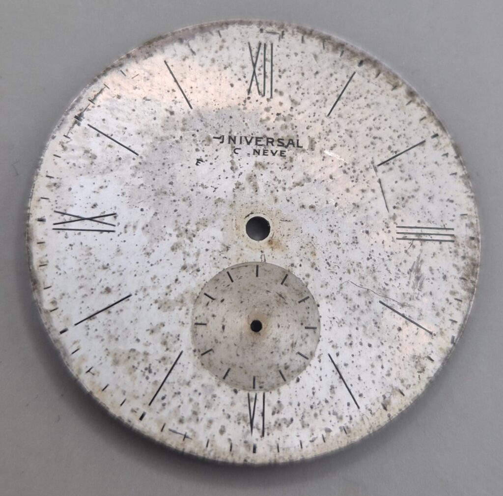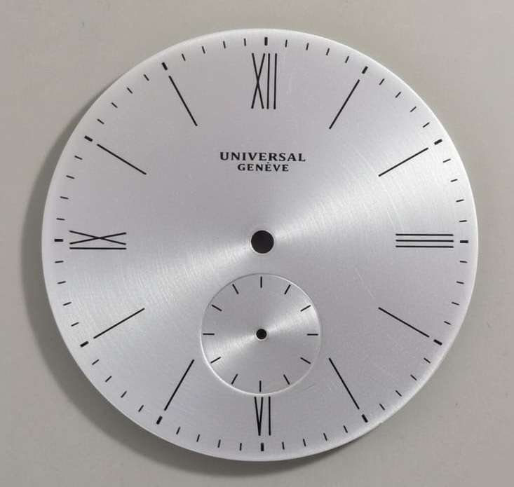 The original typography was scanned into a vector drawing program to then create the matrix in recessed steel. Then the original dial was taken for a mirror polish before creating the “argente” effect and silver plating. Finally, it was varnished to protect the surface and printed with special inks using a pad printing technique. A combination of modern and period techniques was used to achieve work of excellence